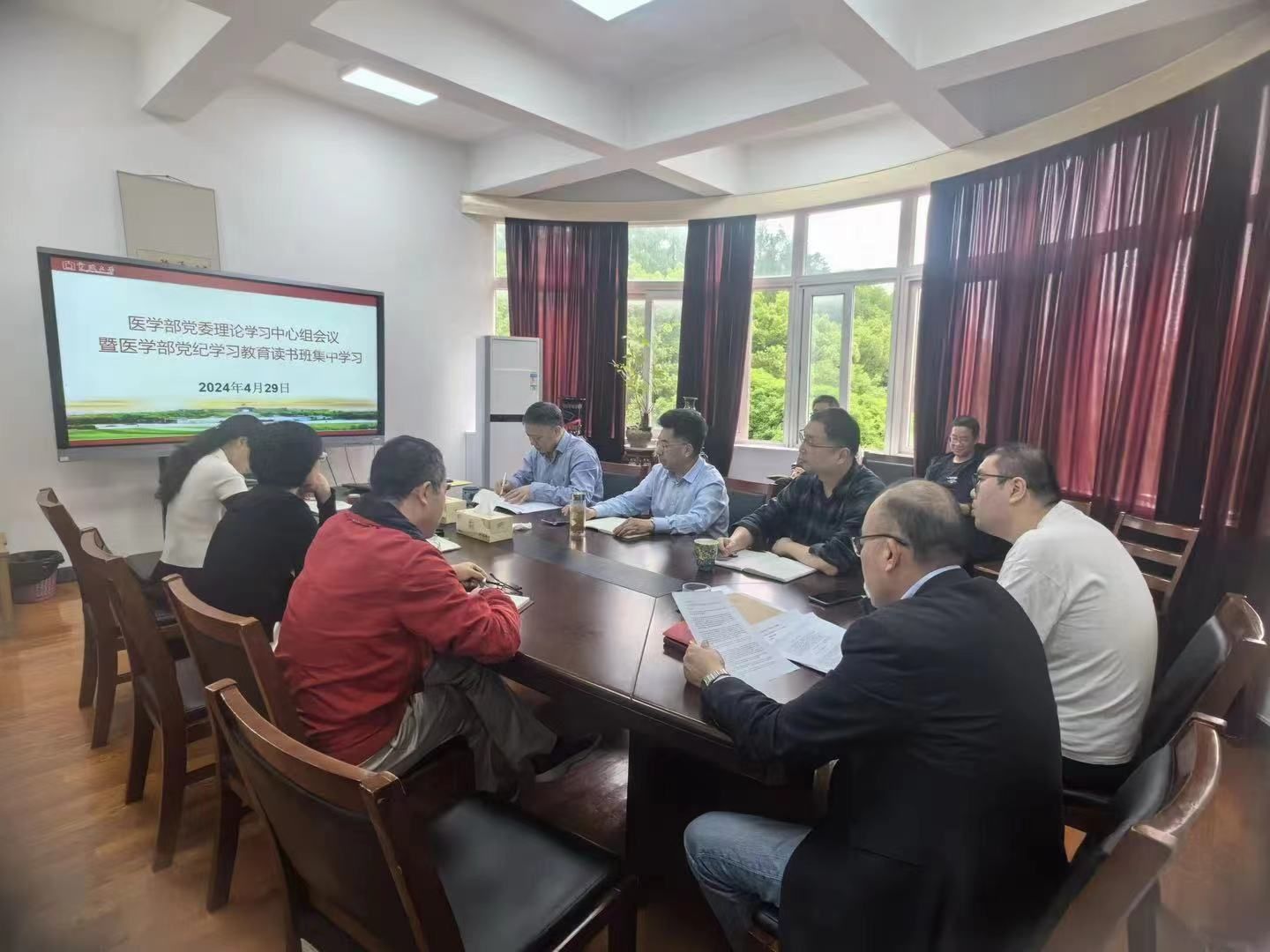 为进一步加强党的纪律建设,提升党员的纪律意识,4月29日,杏吧视频 党委召开理论学习中心组会议暨杏吧视频 党纪学习教育读书班集中学习会。会议由党委常务副书记王钱永主持,全体党政班子成员、党委委员、理论学习中心组成员参加了会议。