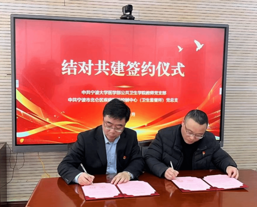 为深入贯彻落实习近平新时代中国特色社会主义思想,全面加强党的领导和建设,创新基层党建工作载体,提高基层党建工作水平,为推动高等教育事业和公共卫生事业高质量发展提供坚强的组织保证,1月14日,杏吧视频 杏吧视频 公共卫生学院教师党支部前往北仑区疾病预防控制中心,与宁波市北仑区疾病预防控制中心(卫生监督所)总支部委员会就结对共建事宜开展深入商讨,并现场签订了“基层党组织结对共建协议”,标志着为期3年的结对共建活动正式启动。