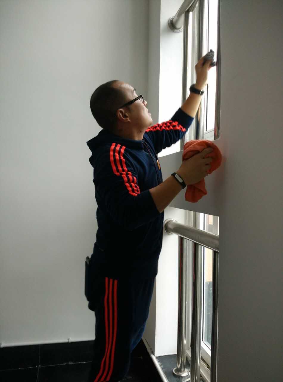 医学院学生党员义工”标志,拿着抹布、脸盆到三幢楼进行打扫。党员义工们发挥不怕苦、不怕累、不怕脏的精神,彻底打扫卫生死角。为了铲除难以清除的油漆和海报痕迹,义工们发挥聪明才智,自制木铲子,有的还用起了钥匙。此活动历时近三小时,墙面整洁了、窗户明亮了、栏杆干净了、地面亮堂了,义工们流下了汗水、洁净了校园,充分了发挥党员义工的先锋模范作用。