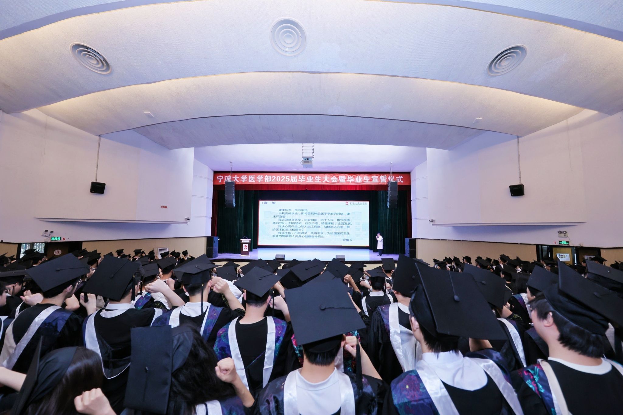 在毕业生代表发言环节,博士毕业生代表朱汇分享了从护理学跨界至预防医学、临床医学的求索之路。“梦想非终点,是将每次‘失去’转化为重新出发的‘获得’。本科生樊昕意回溯了课堂苦读、临床见习的成长点滴,誓言“以党员赤诚守护人民健康”。