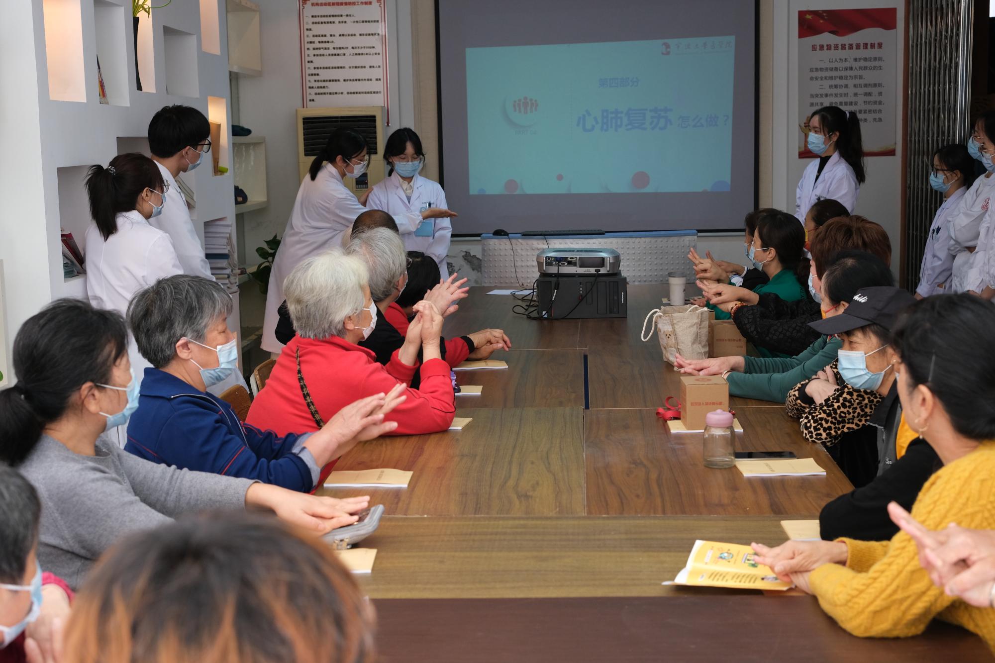 活动主要围绕基层社区老年人生活中发生频率较高的紧急医疗事件进行科普,例如烫伤、气道异物阻塞,脑梗以及心肺复苏等。通过对常见紧急医疗事件的解读与分析,现场模拟等方式,切实帮助基层老年人提升自身健康与安全保障,正确引导基层老年居民树立健康的生活观念与生活习惯。同时还为老人们提供血压测量,健康咨询以及义诊活动。