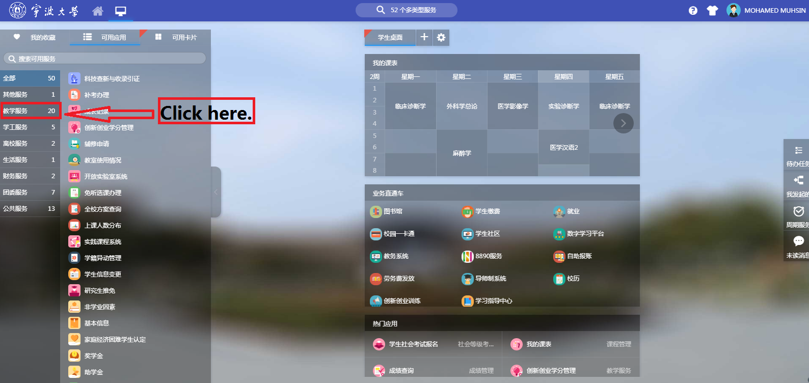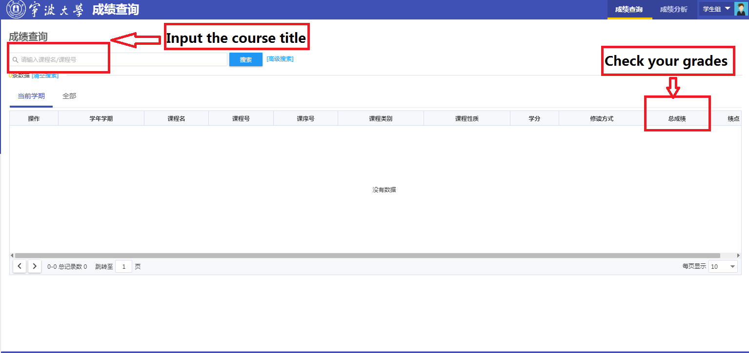 The name of the course is given in Chinese; you can refer to your class timetable to compare with.